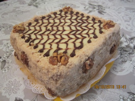 орехом, пропитаны сливочно-сметанным кремом и сахарной пудрой.